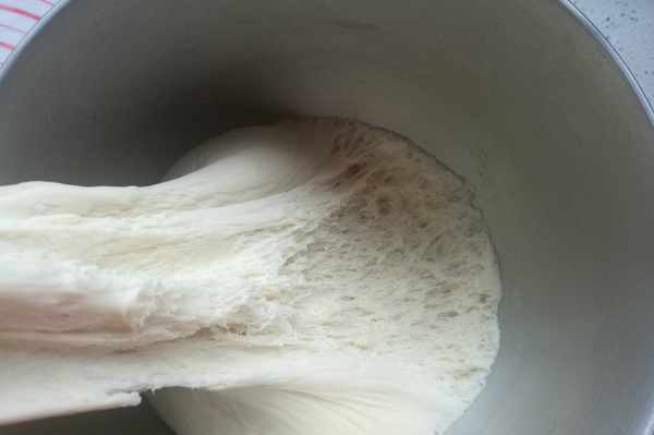 拉開面團呈蜂窩狀,發酵完成。