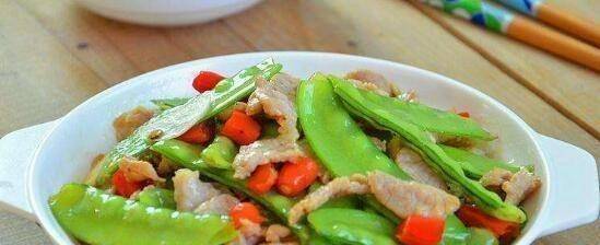 配料:瘦豬肉200克,荷蘭豆100克,大蒜2瓣,醬油1/2勺,白糖1/3勺,淀粉1/3勺,料酒1/2勺,1/2勺鹽,1/4勺雞精