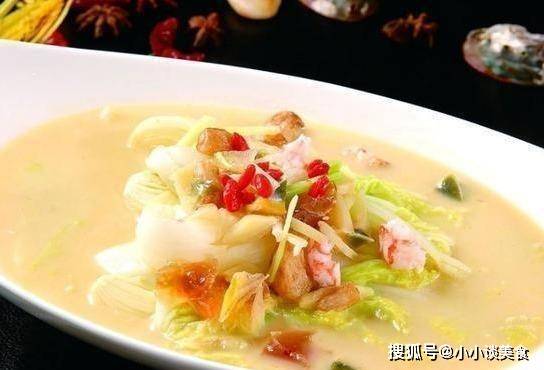 材料:小白菜、蝦、胡蘿卜碎、辣椒碎、高湯、雞精、鹽、淀粉