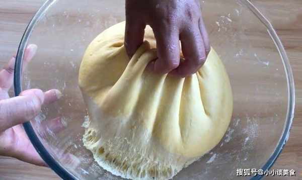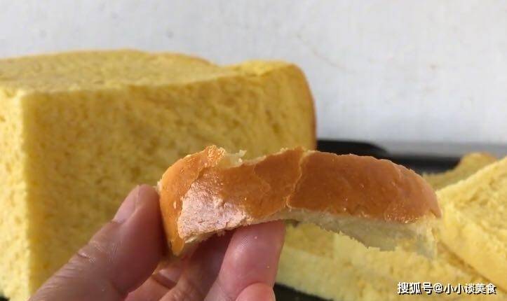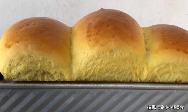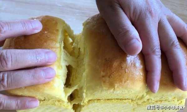 4.生面團做好後,放入吐司罐中,蓋上保鮮膜,二次發酵至90%飽滿。將1個雞蛋打入碗中,攪拌均勻並刷勻表面。5、烤箱上下預熱190度,預熱5分鐘,模具放在烤箱最底層,上下190度烤1小時左右。中途蓋上錫箔紙,當顏色令人滿意並且南瓜吐司呈金黃色時,即可從烤箱中取出。南瓜換個做法,不炒不蒸不煮,蓬松軟拉絲,每天學著做。切段看裡面還是很絲滑的,放涼切開看毛孔是否細膩均勻,入口有淡淡的南瓜味,好聞又爽口,很經典。美味。如果你喜歡,現在就做吧!