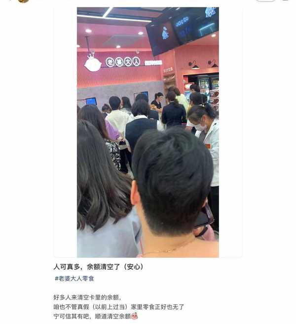 上述傳言導致不少消費者前往“老婆大人”各門店消費卡內餘額,一度造成店面擁擠。幾傢正常營業的門店面對突如其來的消費“大軍”,隨即貼出聲明否認傳聞,更有店員喊話:“明天後天都可以買,不會關掉的”。