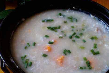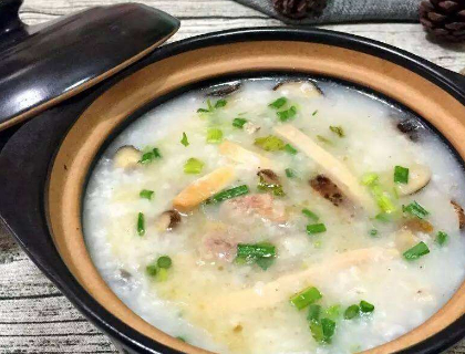 大米約200克,滴入少許香油,用清水浸泡30分鐘以上。瘦肉切小丁,放入碗內調入1/4匙食鹽靜置30分鐘。薑洗凈去皮切細絲,香蔥切碎,皮蛋三枚切丁。砂鍋中註入清水,沸騰後倒入肉丁,撇去浮沫,繼續沸騰2分鐘左右。倒入薑絲和皮蛋,繼續煲煮2分鐘後倒入浸泡好的大米。煤氣調成小火,煲煮40分鐘,中間每隔5分鐘要攪拌一次,以防糊底。40分鐘後調入鹽和香蔥碎,熄火加蓋1分鐘即可。