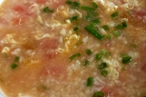 【原材料】:小米、蔥薑、西紅柿、食鹽、白糖、胡椒粉、雞蛋液、食用油。