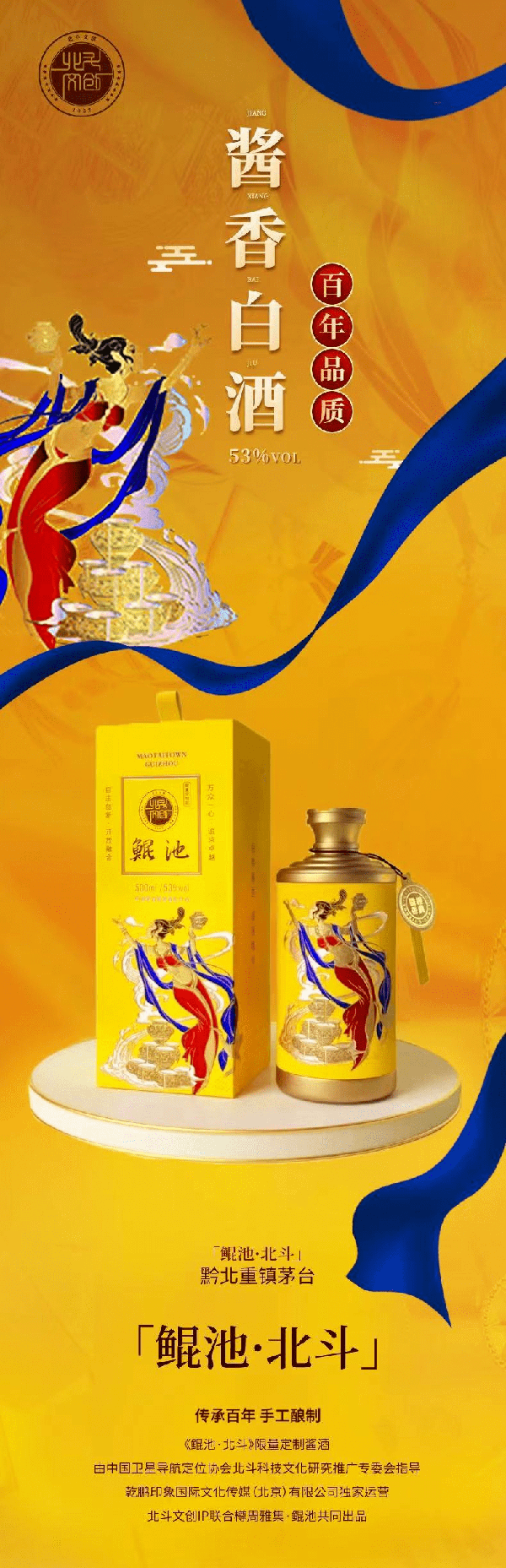 其中,“鯤池·北鬥”聯名款醬酒就是新時代傳承周老精神的重要載體,由中國衛星導航定位協會北鬥科技文化研究推廣專委會指導,乾鵬印象國際文化傳媒(北京)有限公司獨傢運營,北鬥文創IP聯合樽周雅集·鯤池共同出品,囊括“鯤池·北鬥”慶功酒、“鯤池·北鬥”生肖酒等系列產品,呈現出足年陳的老茅系酒滋味。