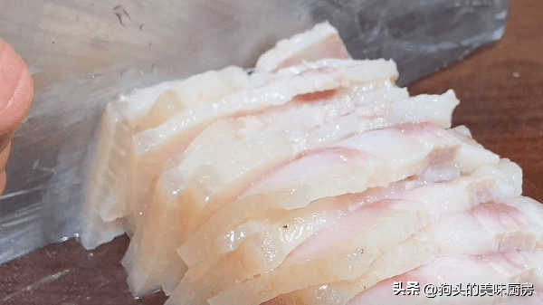 5.再用刀切成薄片,厚度在0.2-0.3厘米就可以瞭。