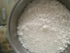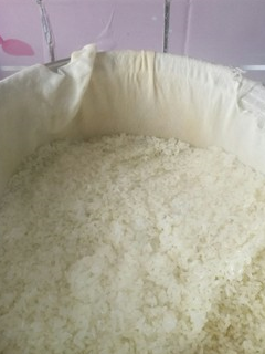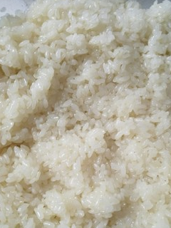 洗凈後平鋪在墊有紗佈的蒸籠裡,大火蒸20分鐘,熟瞭即可關火,否則蒸時間太久,米粒之間太粘,後面就很難操作。