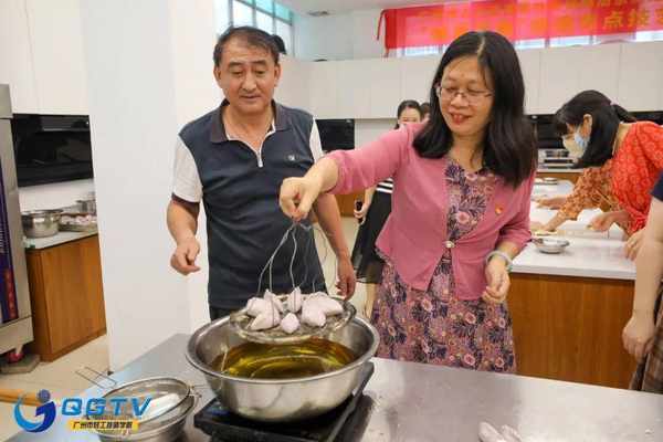 現場氣氛活躍,徐大師手把手向現場女職工們一一展示廣州兩大著名粵點——皮蛋酥、老婆餅的制作過程。雖然制作過程繁瑣,但是徐大師不急不躁、有條不紊,毫厘之間展現精湛技藝,精益求精彰顯工匠精神。女職工們愛聽愛學,積極動手實踐參與體驗,包芋角餡兒、炸芋角,和面、揉面、搟皮……忙得不亦樂乎!活動從下午2點半持續到5點半,女職工們還意猶未盡,翹首以待親手制作的點心出爐。