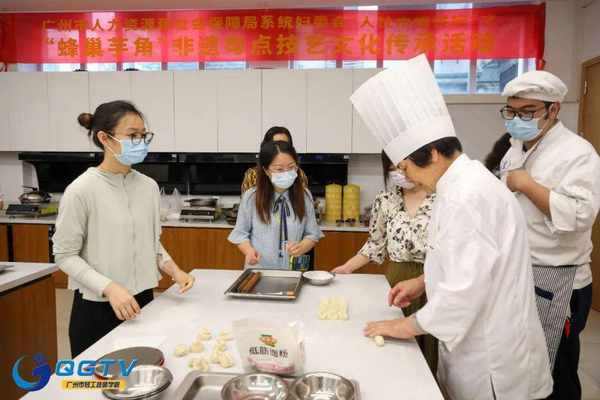5月24日下午,一場非遺粵點技藝體驗、文化熏陶之旅在廣州市輕工技師學院東校區5樓烘焙制作實訓室上演。由廣州市人力資源和社會保障局婦委會主辦、廣州市輕工技師學院婦委會承辦的主題為“蜂巢芋角”非遺粵點技藝文化傳承活動在此舉行。來自市人社局系統35名女職工幹部代表冒雨前來參加。