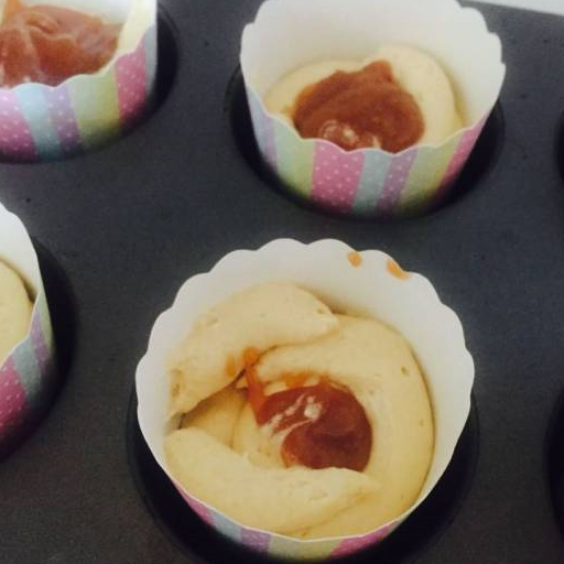 第16步、烤箱預熱180℃,上下火烤10分鐘,轉160℃,再烤20分鐘。趁熱出爐,就完成啦~趁熱吃的時候,表皮是酥脆口感,裡面是綿軟蛋糕和香甜的太妃糖味道~