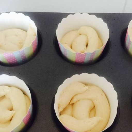 第15步、擠入剩下的面糊至8.9分滿,在表面上再加一點糖漿,這個步驟一定要加,會提升蛋糕的香味。另外可以在蛋糕表面上放自己喜歡的食材,如燕麥片、核桃碎、白芝麻等