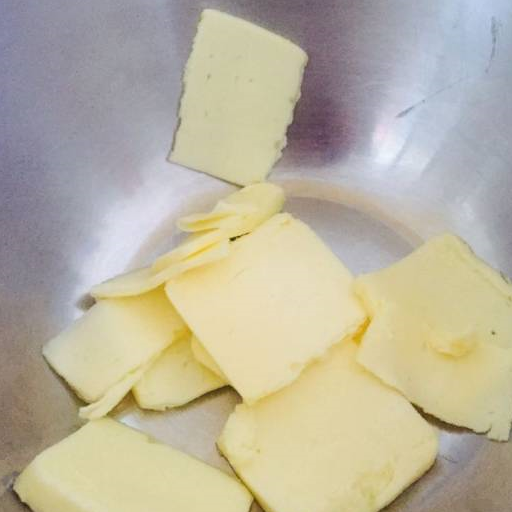 第7步、黃油切小塊,室溫下軟化(輕碰一個坑就是軟化好瞭)
