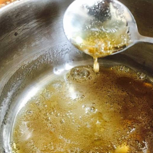 第3步、煮至淡琥珀色關火,註意千萬不要煮過,不然會發苦!煮的過程中不斷攪拌