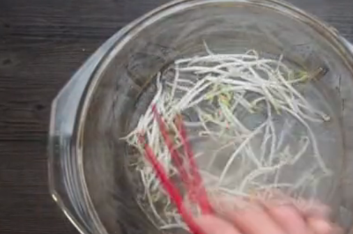 5、把鍋中放入冷水燒開,然後把豆芽放進去焯水下。
