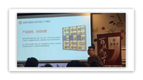 酒吾曰執行總裁杜易澤先生在會上介紹瞭酒吾曰的經營理念、運營模式和營銷政策。讓參會嘉賓更加全面地瞭解瞭酒吾曰的發展方針和未來規劃。