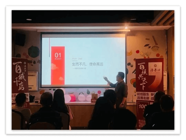 會上,杜易澤杜總詳細介紹瞭酒吾曰“百侯共天下”開放股東招募計劃。2023年,酒吾曰將在合作終端門店中擇優選擇100傢合作夥伴作為初創級股東,給予原始股投資占股資質,享受每年利潤分紅的同時,獲得未來股權變現、收益倍增的機會。