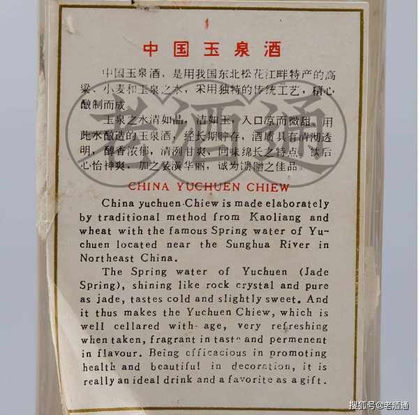 早在850多年前,道教太一道創始人蕭抱珍為報皇恩,將太一道制取藥露的秘籍蒸餾法傳給金皇室。金熙宗赦令在京郊玉泉建立皇傢禦酒坊,取當地玉泉水用蒸餾法釀制禦酒,中國北方早的蒸餾酒由此在玉泉誕生。自此以後,玉泉便酒坊林立,聞名天下而近千年不斷。