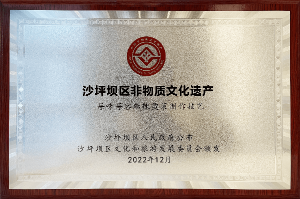 有民間的口碑,也有官方的獎杯。2022年12月,每味每客的麻辣燙技藝獲得瞭重慶市官方的認可,一舉拿下瞭“沙坪壩區非物質文化遺產”的榮譽獎牌。據瞭解,每味每客麻辣燙是重慶餐飲行業中唯一獲此雙認證的餐飲品牌。