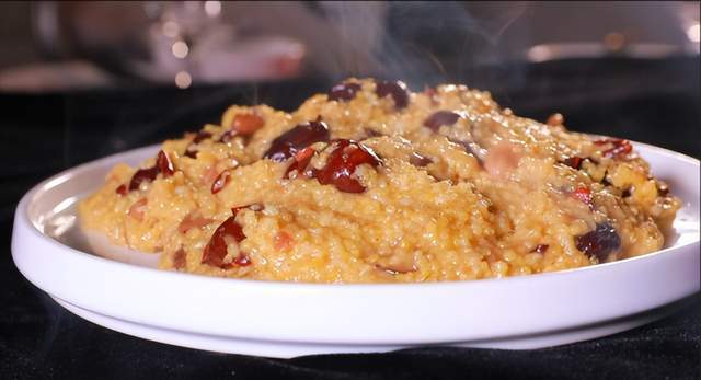 黃米、糯米、紅棗、花生煮成的博山糗糕,與青州黃米糕一模一樣,分量厚實,粘糯甘甜,是魯菜最顯著的特色。