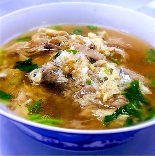 酒過三巡,桌上那盤沒動幾口的魚,拿回後廚,用勺子頭將魚頭魚骨擊碎,加陳醋、胡椒,打上蛋花,煮成一鍋濃濃的湯,酸甜適中、香辣可口,一人一碗,真是又舒服又美味的一道收尾菜。
