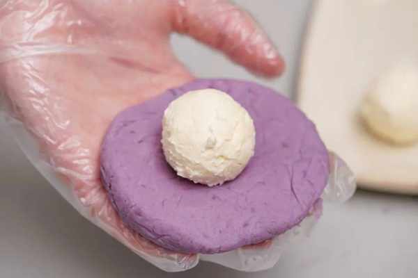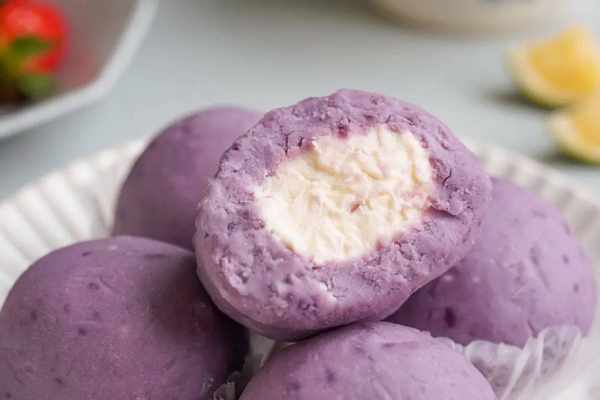 主料用的荔浦芋頭和紫薯,揉入一顆奶酪餡心,一口咬下像是在吃一顆清爽的冰淇淋;我們一起陷入夢幻紫的溫柔吧。