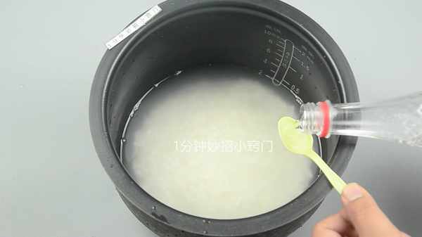 同時,還要倒入幾滴食用白醋,白醋可以讓米飯變得更白而且透亮,增加米飯的香味,但是加入白醋的時候,不要倒入太多,幾滴就可以瞭,因為白醋裡面含有醋酸的成分,如果倒多瞭煮出來的米飯,就會有一股酸味。