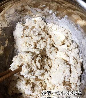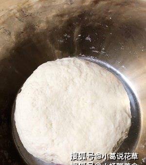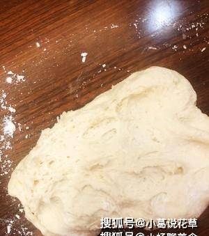 首先,準備面團並等待它發酵。首先,將糖和酵母加入180ml溫牛奶中(手溫可以,否則酵母會被燙死)攪拌溶解,然後將牛奶混合物加入300g面粉中攪拌至幹,加入你的手面團。