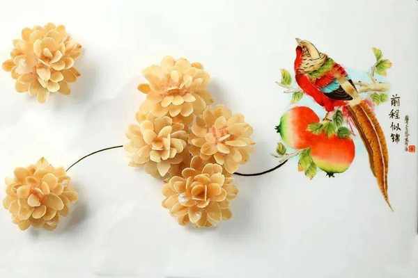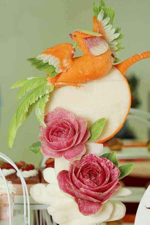 鐘程昭《鶯歌燕舞》果蔬雕刻