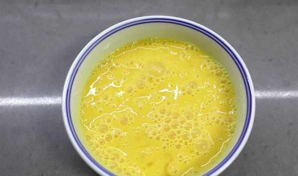 3.將雞蛋打入碗中,再倒20克左右的涼水稀釋一下,這樣炒出來的雞蛋嫩而且蓬松;