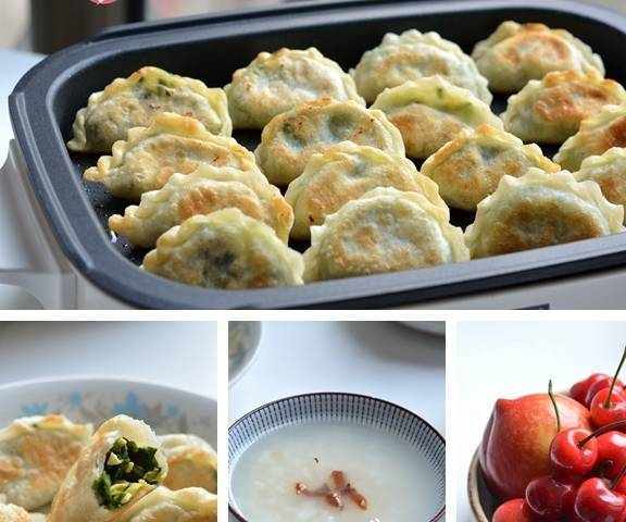 4.煎餃子時準備水果,豆漿或者粥也好瞭,盛碗中;餃子出鍋,開吃!如果是帶在路上,餃子也可以裝進保鮮袋中,非常省事。