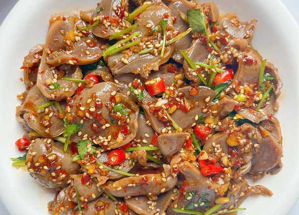 食材:鴨胗、小米辣、香菜、薑,蔥