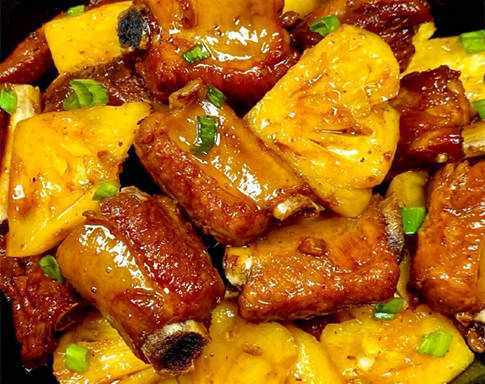 出鍋:這款鮮嫩多汁的「香炒菠蘿排骨」排骨經過細致醃制,肉質酥爛多汁,每一口都帶來滿滿的滋味感。而加入新鮮菠蘿塊,它們與排骨的完美結合,咬上一口,清甜的菠蘿汁與炙熱的排骨在口中融合,置身於陽光下的讓微風吹過的清爽一般!