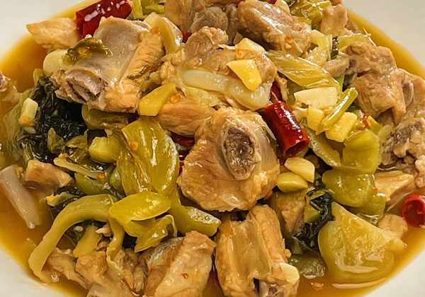 食材:排骨、酸菜、薑蔥蒜、幹辣椒、冰糖、八角、桂皮、料酒、胡椒粉、鹽