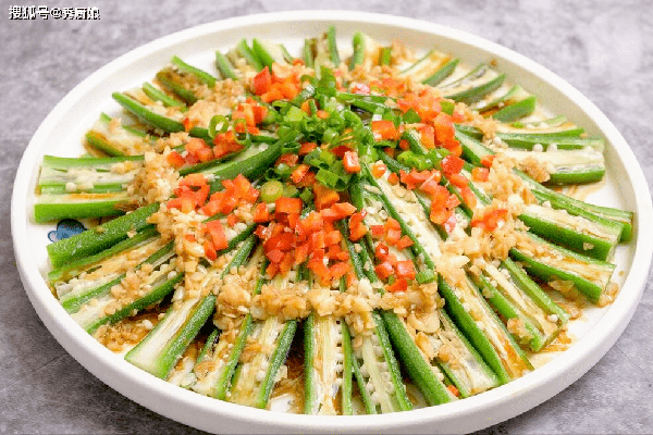 材料:新鮮秋葵、大蒜、辣椒、胡蘿卜、香蔥、鹽、生抽、食用油。