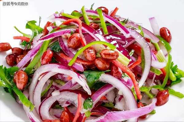 材料:洋蔥、醋、食鹽、白糖、花椒粉、香菜、油炸花生米(可選)。
