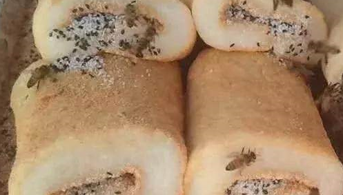 相信不少人都吃過糍粑,而這道小吃也是差不多的口感,隻是在做法上多出一群蜜蜂。而觀察瞭一下這個做法先將糯米搗碎揉成團,而後搟成大餅狀後,再切下一小塊,鋪上芝麻和糖,再把糯米團包好裹成長條狀,切成段即可開吃~