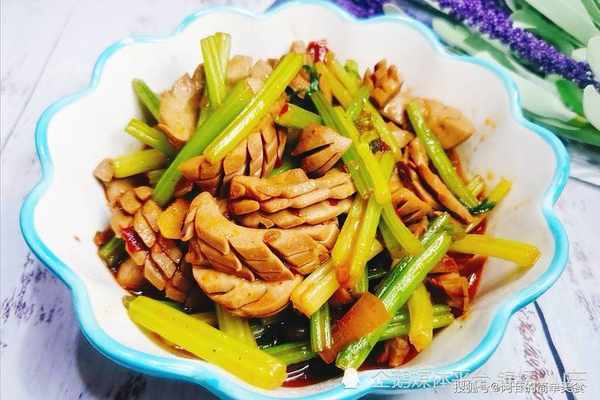 材料: 芹菜300克、豬腰花200克、蔥薑適量、鹽、醬油、料酒、植物油適量。