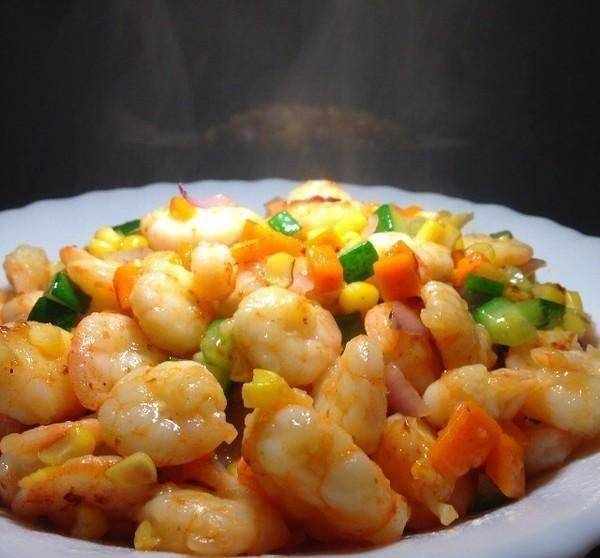 原料:蝦仁350克,黃瓜30克,胡蘿卜30克,玉米粒30克,油1茶匙,鹽1茶匙,白酒1茶匙,淀粉2茶匙;