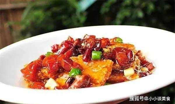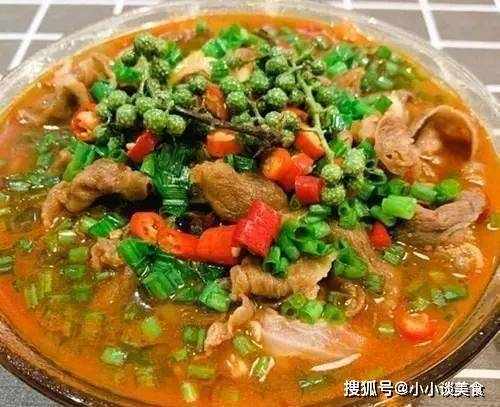 4、平底鍋放少許油,燒熱。將幹辣椒條、青椒、大蒜炒熟,然後加入鮮湯加入肉末,再加入糖、醋、黑醬油、胡椒粉煮,試一下,湯會變稠。倒在稻殼上。