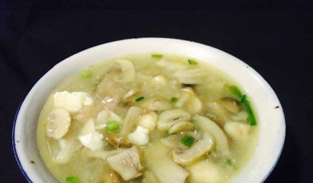 4、接下來我們開始炒。否則,把豆腐瀝幹,加入豆腐,加一勺鹽給豆腐調味。水燒開後,燒30秒,倒入盆中浸泡豆腐,讓豆腐變得滾燙滾燙。5、鍋洗凈,加入適量的油,放入蒜頭,放入蒜頭油中炸至金黃色。加入輔料,邊攪拌邊炒,聞出菌味。加入一匙水,充分發揮蘑菇的香氣。加2克蠔油提鮮,加3克鹽調整基本口味,加少量糖提鮮,加少量胡椒粉煮蘑菇湯。