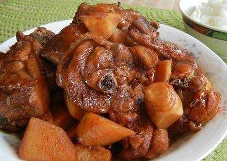 1.幹香菇用水泡軟,切成長條。將纖維較粗的青筍切成長條或小段。把蘿卜切成長條。將豌豆莢(荷蘭豌豆)沿對角線切成兩半。將雞塊洗凈切塊