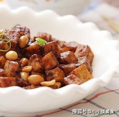 原料:北豆腐1條,水,淀粉,薑,豆瓣醬,糖,鹽,花生,油,蔥花,胡椒粉,料酒,醋,醬油,水。