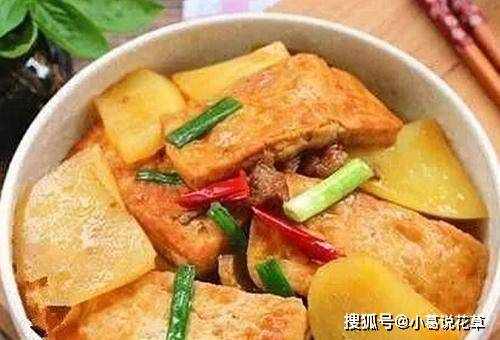 材料:土豆、豆腐、蔥花、幹辣椒、豆瓣醬、油、蠔油