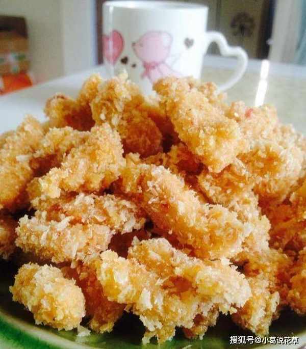 材料:雞丁500克,面包糠100克,鹽適量,醬油適量,淀粉適量,花椒粉適量,孜然粉適量
