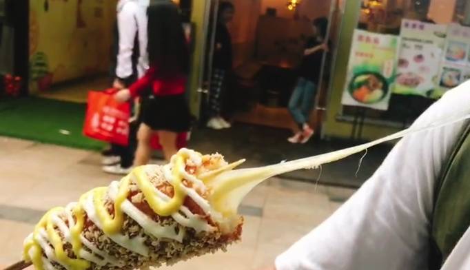 原標題:面粉撒上面包糠包裹著兩條芝士塊,隔壁小孩饞哭瞭,探店南昌金街