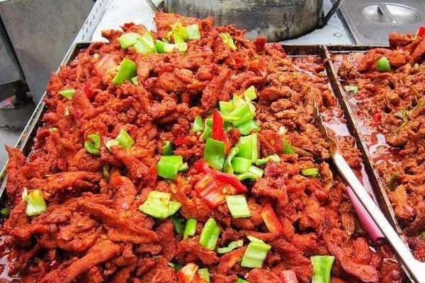 我就去問瞭問,老板說這是雞肉和牛肉兩種,都是肉夾饃的主料,要知道肉夾饃是陜西省傳統特色食物之一。肉夾饃,實際是臘汁肉,白吉饃這兩種食物的絕妙組合。肉夾饃合臘汁肉(是大肉)、白吉饃混為一體,相互烘托,將各自滋味發揮到極致。饃香肉酥,肥而不膩,讓人吃完回味無窮。到瞭我們這裡,就入鄉隨俗瞭,因為這裡都吃清真多,老板就改良瞭,用瞭雞肉和牛肉