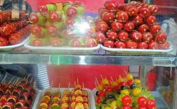 糖葫蘆,我們這裡也有啊,特別是秋冬季節,繁華的商業街頭都是,這是我去逛街拍的,5元一串,真的不便宜啊,還好顏色漂亮,口味不一樣,也算值得瞭