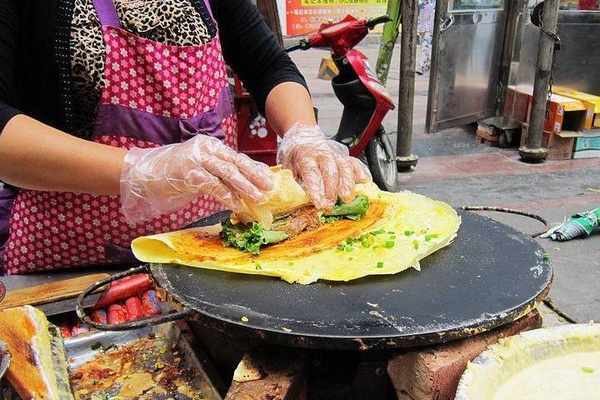 在街頭,雞蛋灌餅也是一樣受歡迎,雖然我很少吃,宅傢一族,少吃瞭好多街頭美食