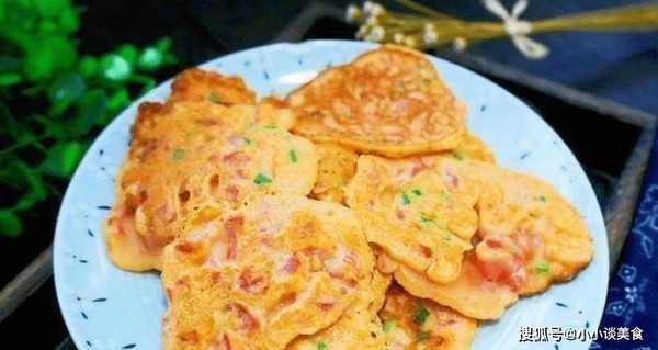 5、鍋中放適量油,油熱後將面團倒入鍋中,攤成小餅。兩面凝固金黃熟透。