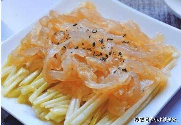 1.海蜇洗凈,泡水換幾次,去掉多餘的鹽分,切條