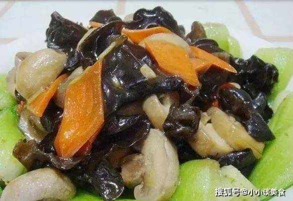 3.另起一鍋燒熱油,依次放入胡蘿卜、香菇、香菇、香菇,快速翻炒,加入鹽和香菇精調味後出鍋,如圖。